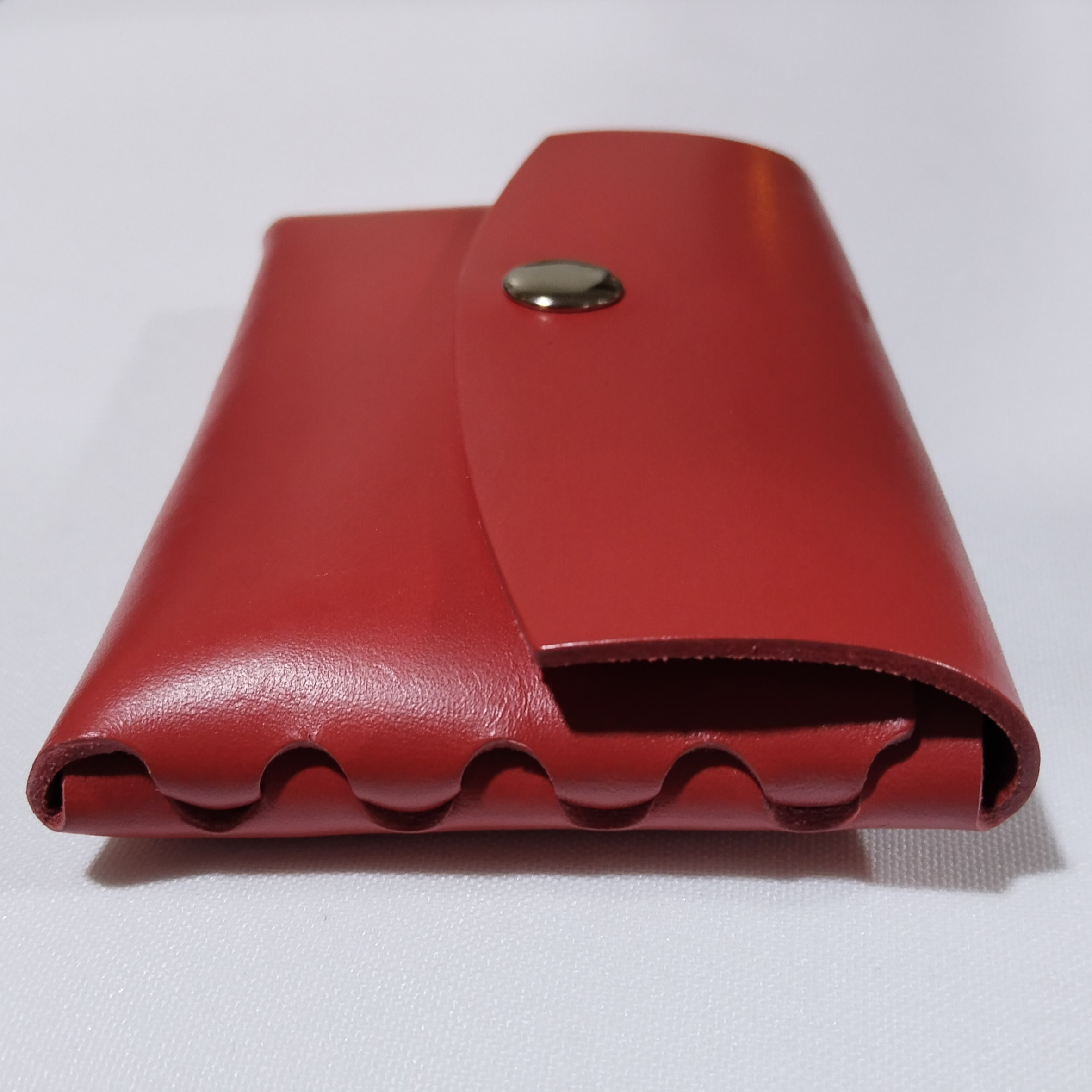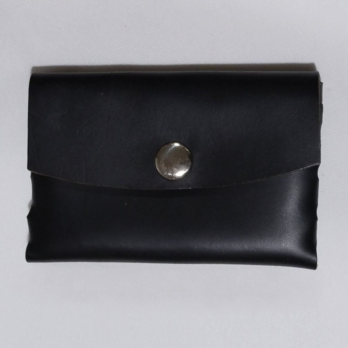 Tarjetero minimalista de Lola Blommor confeccionado en cuero rígido y plegado en una sola pieza. Cierre metálico a presión y fuelle ondulado que gana capacidad sin abultar. Compacto, duradero y perfecto para tarjetas y billetes doblados.